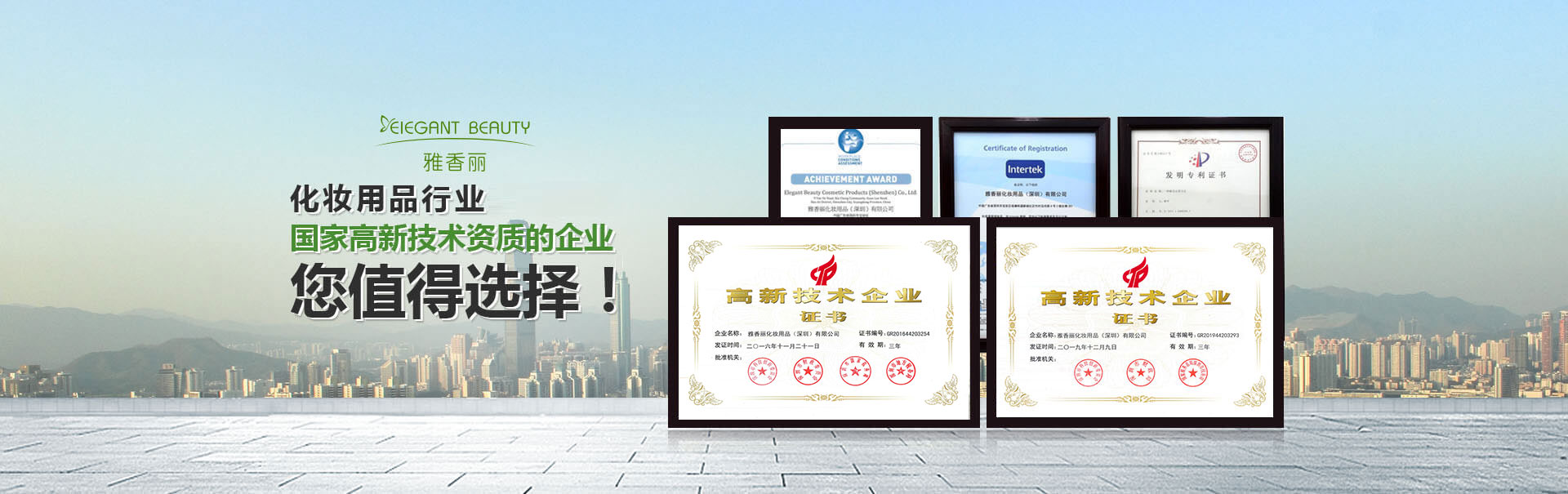 占地面積一萬余平方米,專業(yè)技術(shù)員工300余人,雅香麗憑借著在行業(yè)內(nèi)的專業(yè)化、精細(xì)化、特色化、新穎化、可持續(xù)化,榮獲國家"高新技術(shù)企業(yè)"、"深圳市專精特新中小企業(yè)"等重量級認(rèn)證。