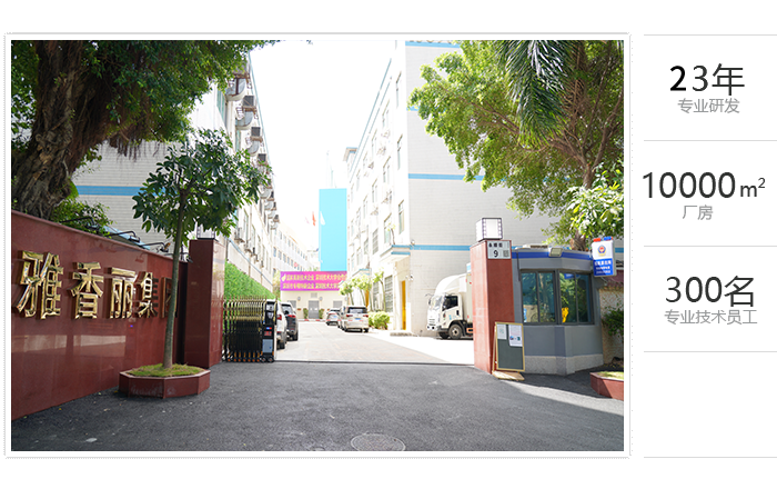占地面積一萬余平方米,專業(yè)技術(shù)員工300余人,雅香麗憑借著在行業(yè)內(nèi)的專業(yè)化、精細(xì)化、特色化、新穎化、可持續(xù)化,榮獲國家"高新技術(shù)企業(yè)"、"深圳市專精特新中小企業(yè)"等重量級認(rèn)證。